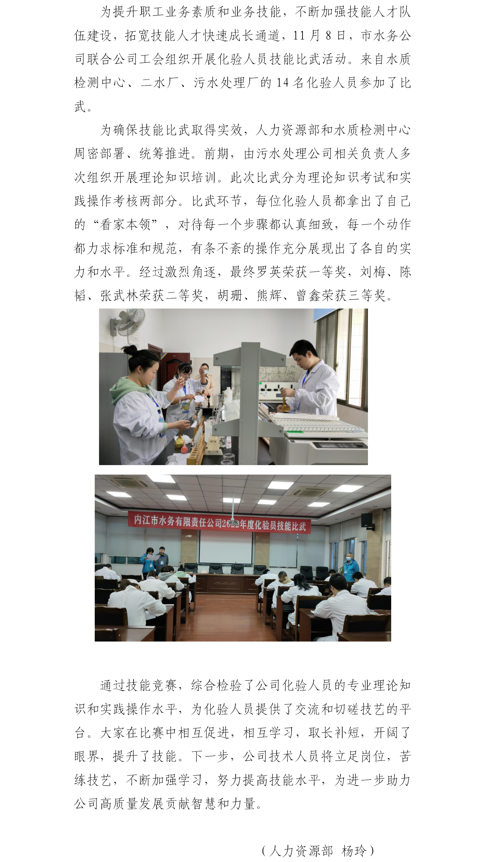 市水務(wù)公司開展化驗(yàn)人員技能比武