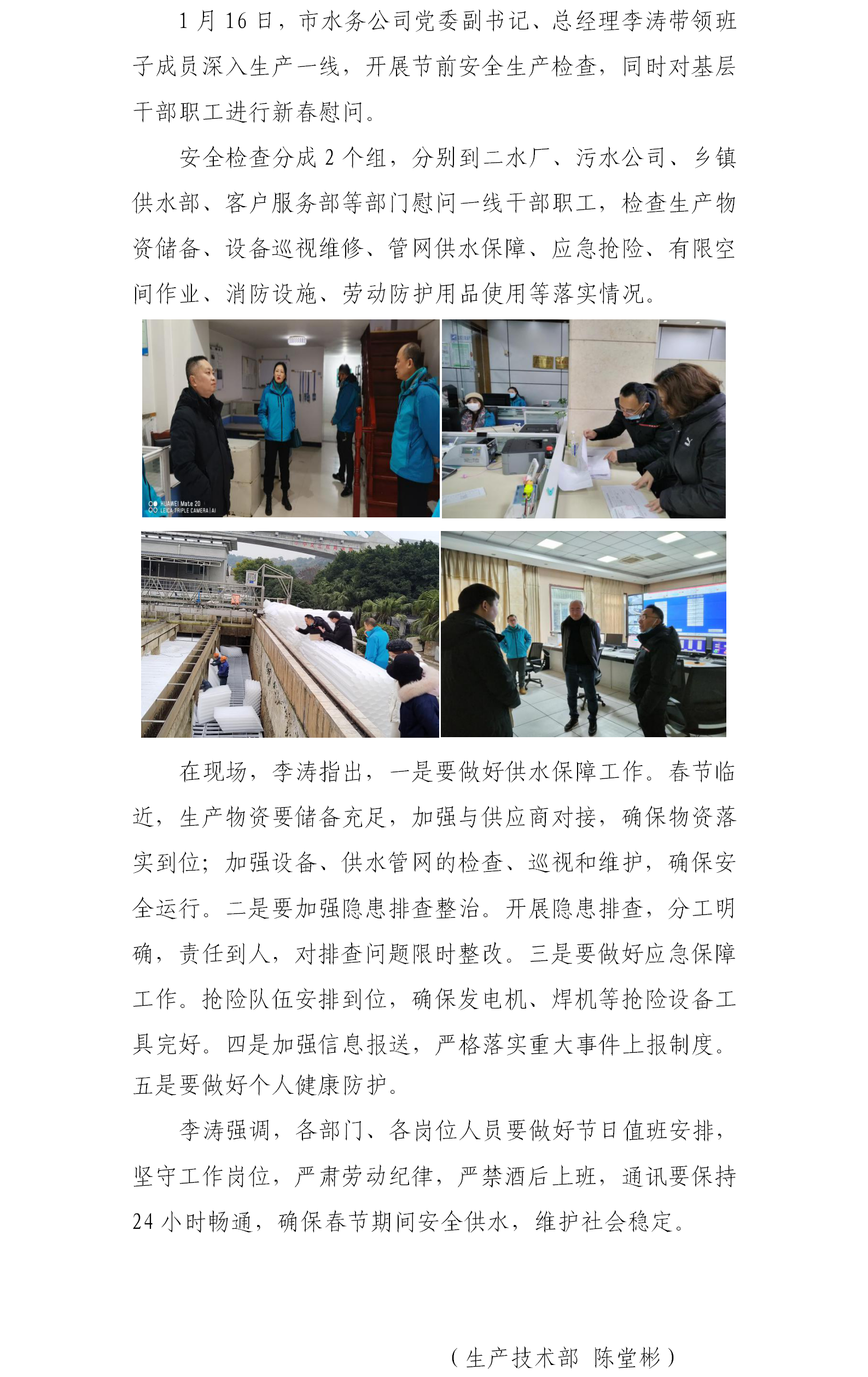 喜迎新春佳節(jié) 確保安全供水 ——市水務(wù)公司開展春節(jié)慰問檢查