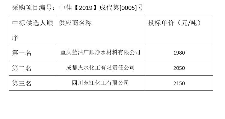 內(nèi)江市污水處理有限責任公司碳源補充劑和輔助消毒劑招標項目(第1包)評標結(jié)果公示