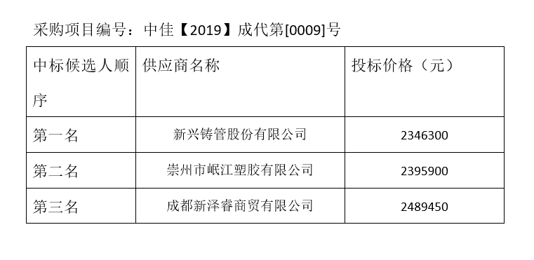 內(nèi)江市水務(wù)有限責(zé)任公司球墨鑄鐵管管材及管件采購項目評標結(jié)果公示