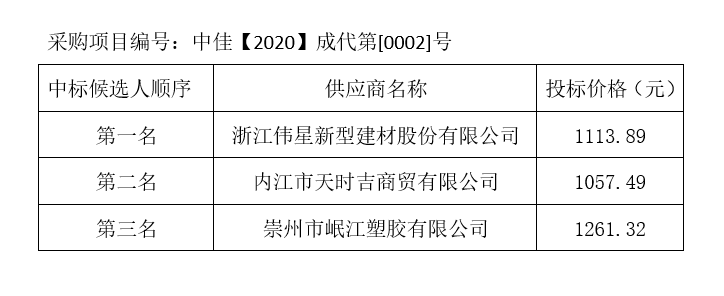 內(nèi)江市水務(wù)有限責(zé)任公司PPR給水管及管件采購(gòu)項(xiàng)目評(píng)標(biāo)結(jié)果公示