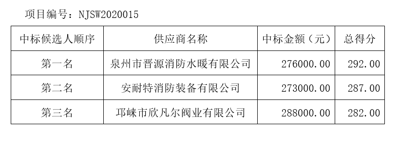 內(nèi)江市水務(wù)有限責(zé)任公司消火栓采購(gòu)項(xiàng)目評(píng)標(biāo)結(jié)果公示