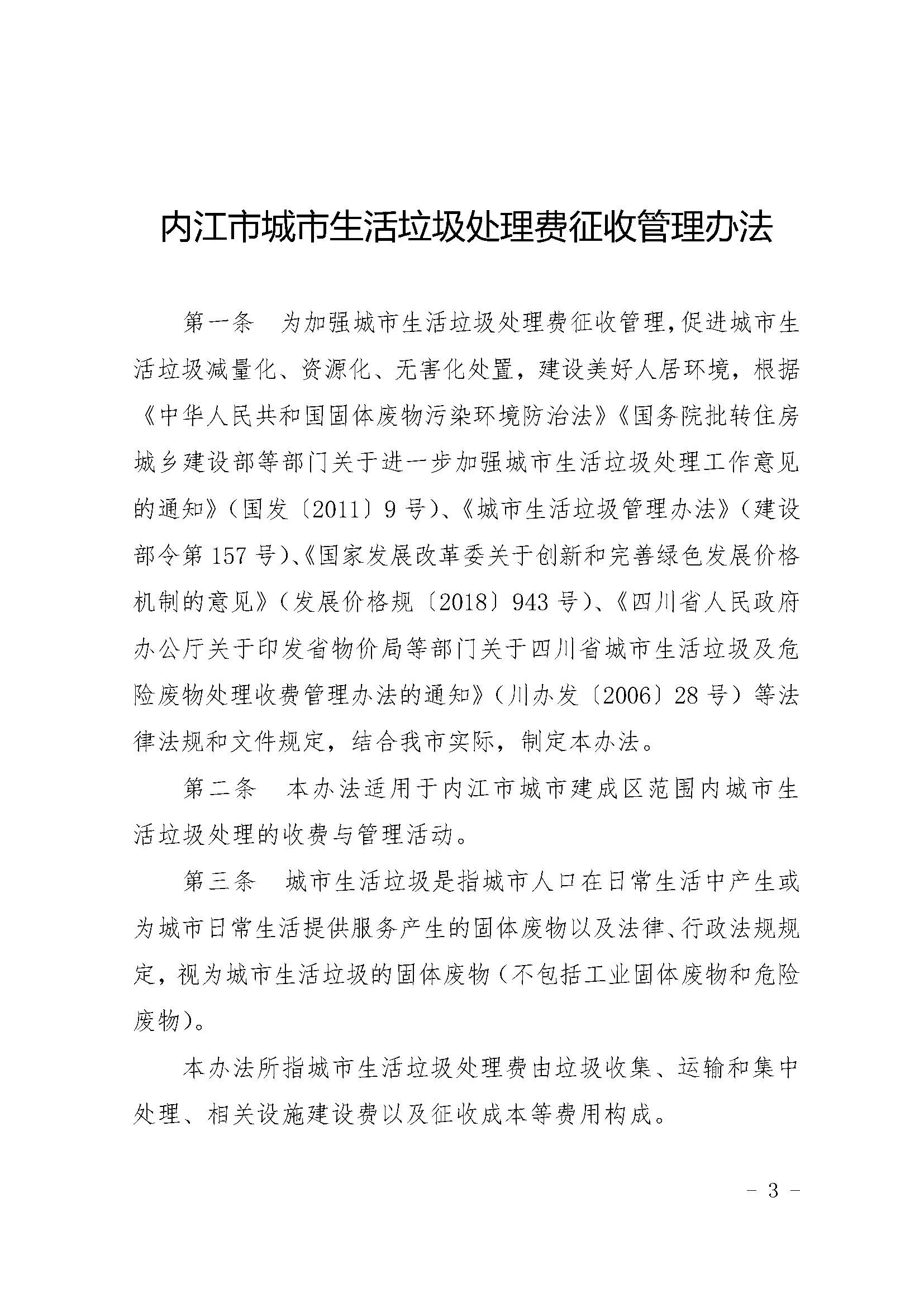 關(guān)于印發(fā)《內(nèi)江市城市生活垃圾處理費(fèi)征收管理辦法》的通知