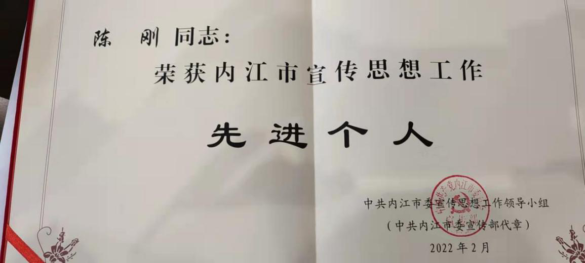 二水廠陳剛同志榮獲內(nèi)江市宣傳思想工作先進(jìn)個(gè)人