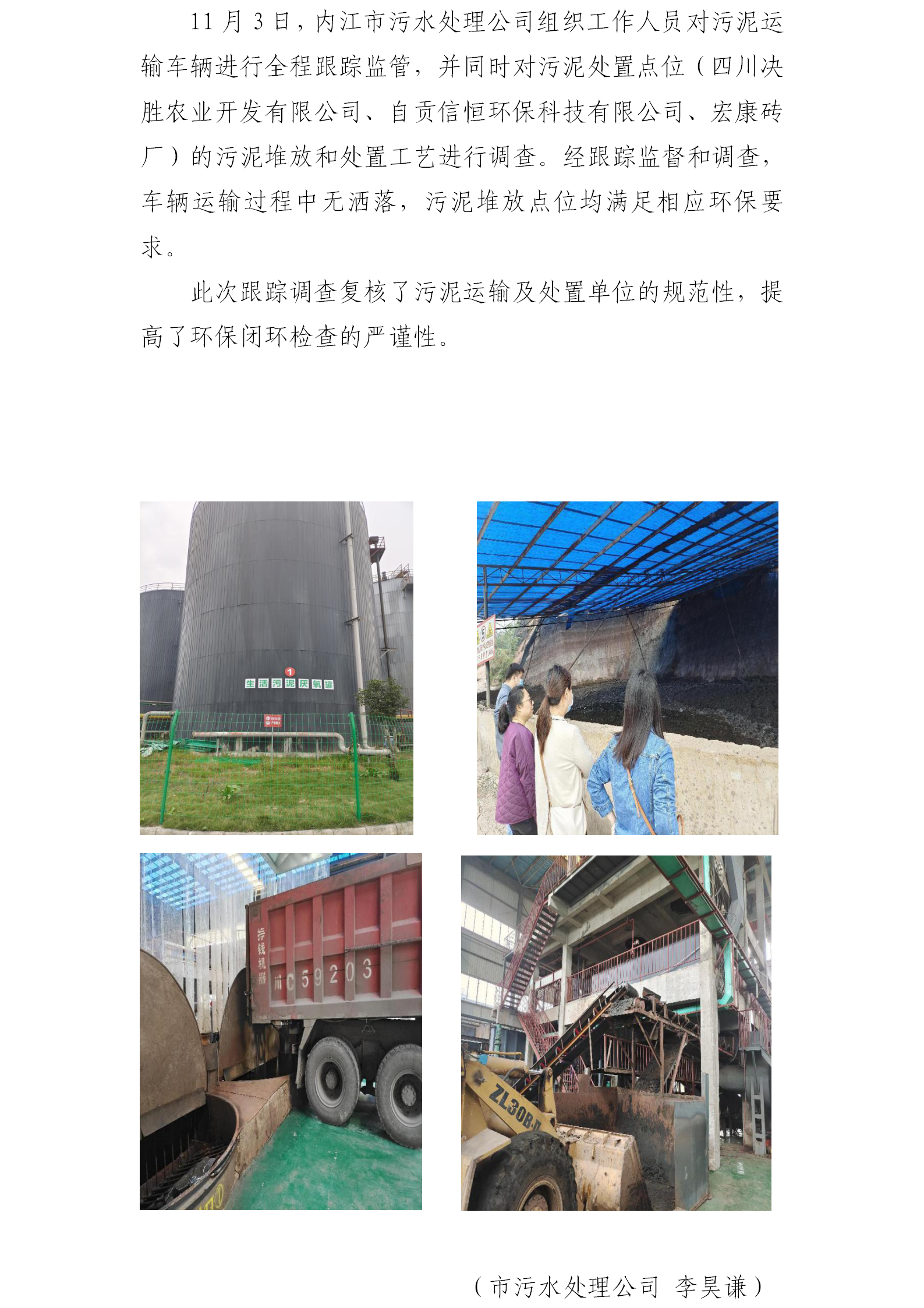 內(nèi)江市污水處理有限責(zé)任公司 跟蹤污泥運輸及處置情況