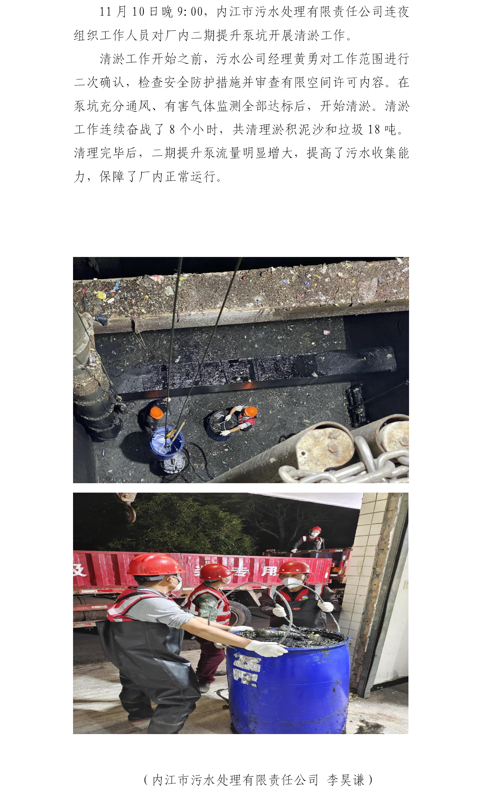 內(nèi)江市污水處理有限責(zé)任公司提升泵坑清淤