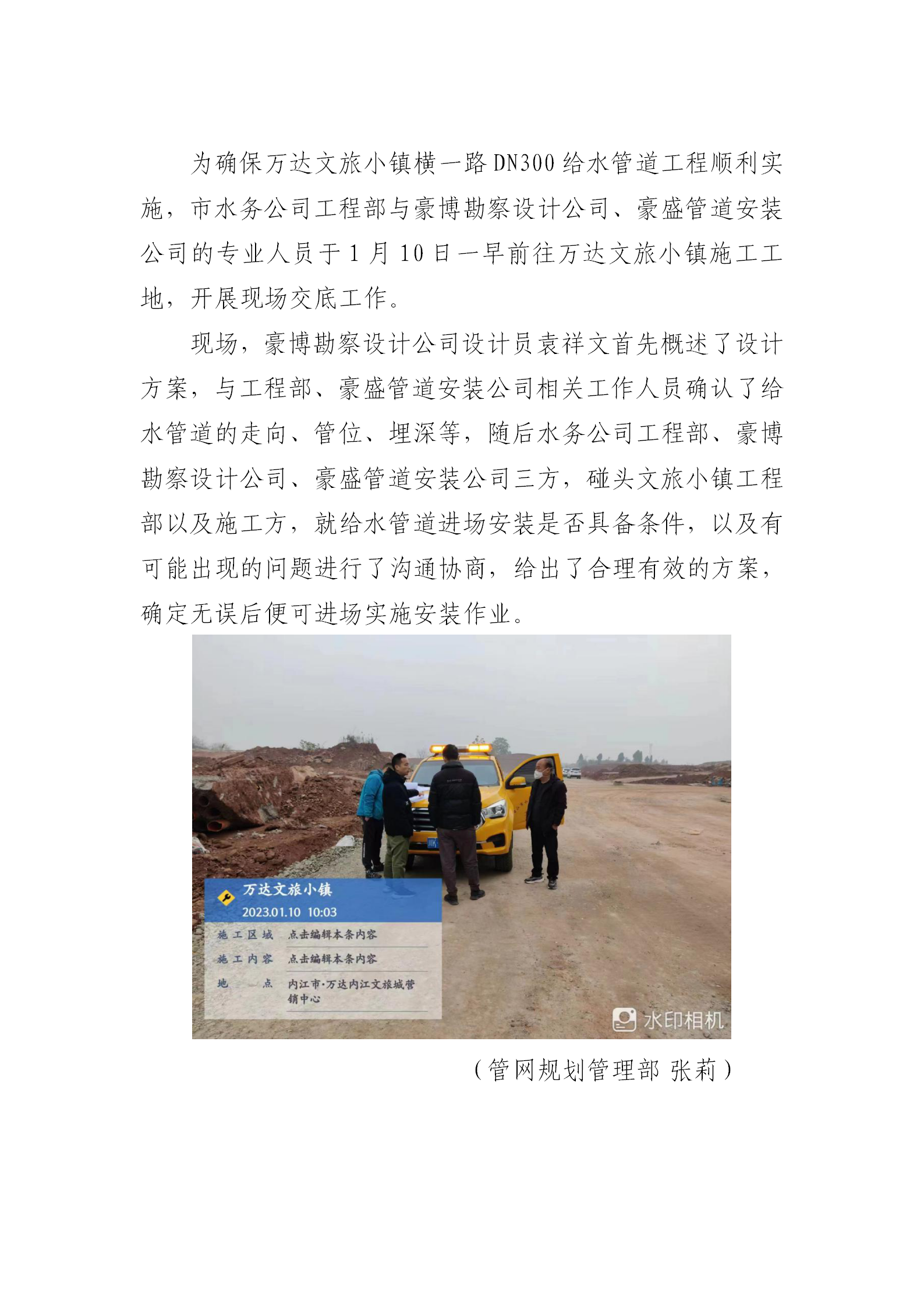 現(xiàn)場交底 確保給水管道工程順利實施