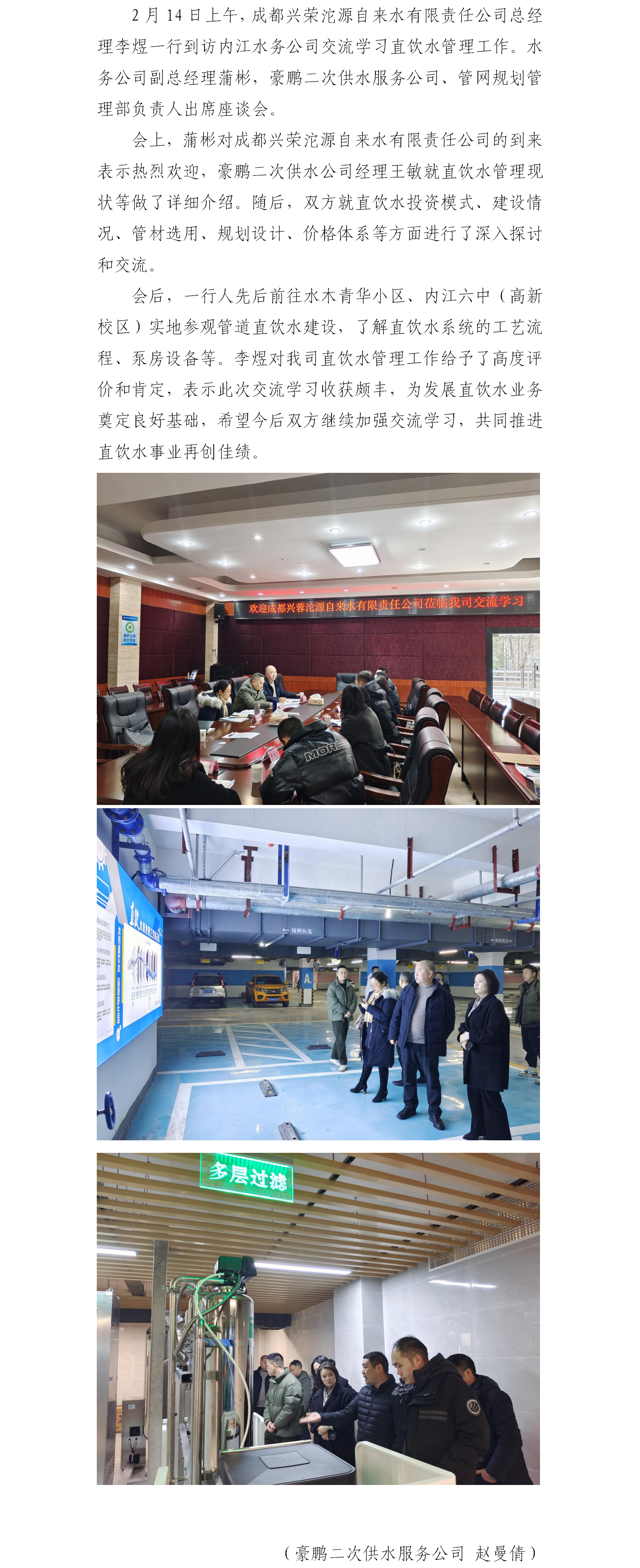 成都興榮沱源自來水有限責任公司到內(nèi)江水務交流直飲水管理工作