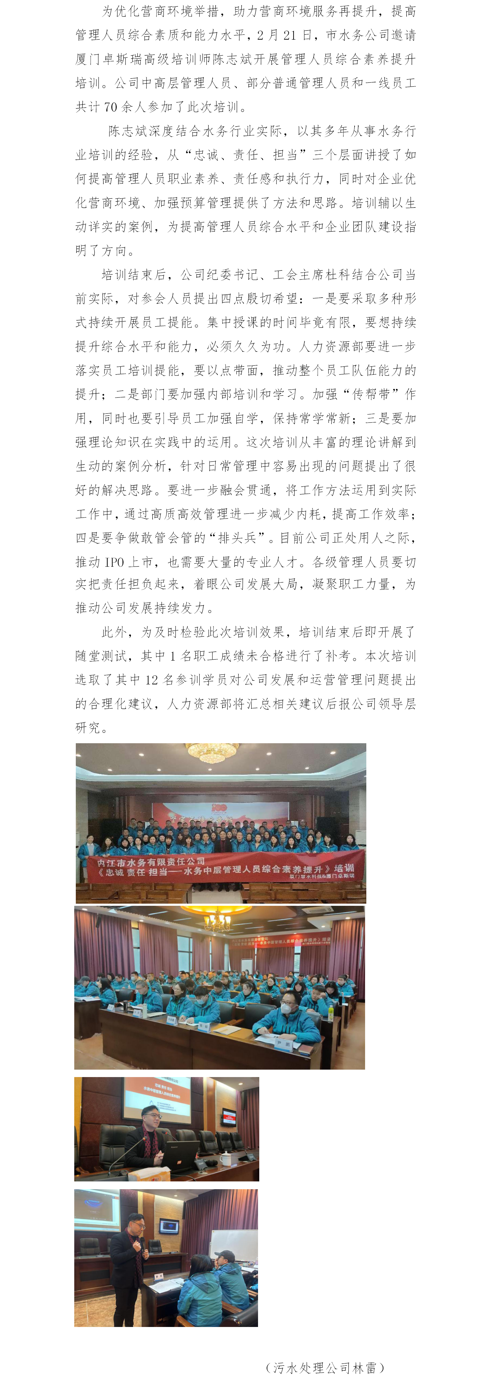 市水務(wù)公司開展管理人員綜合素養(yǎng)提升培訓(xùn)