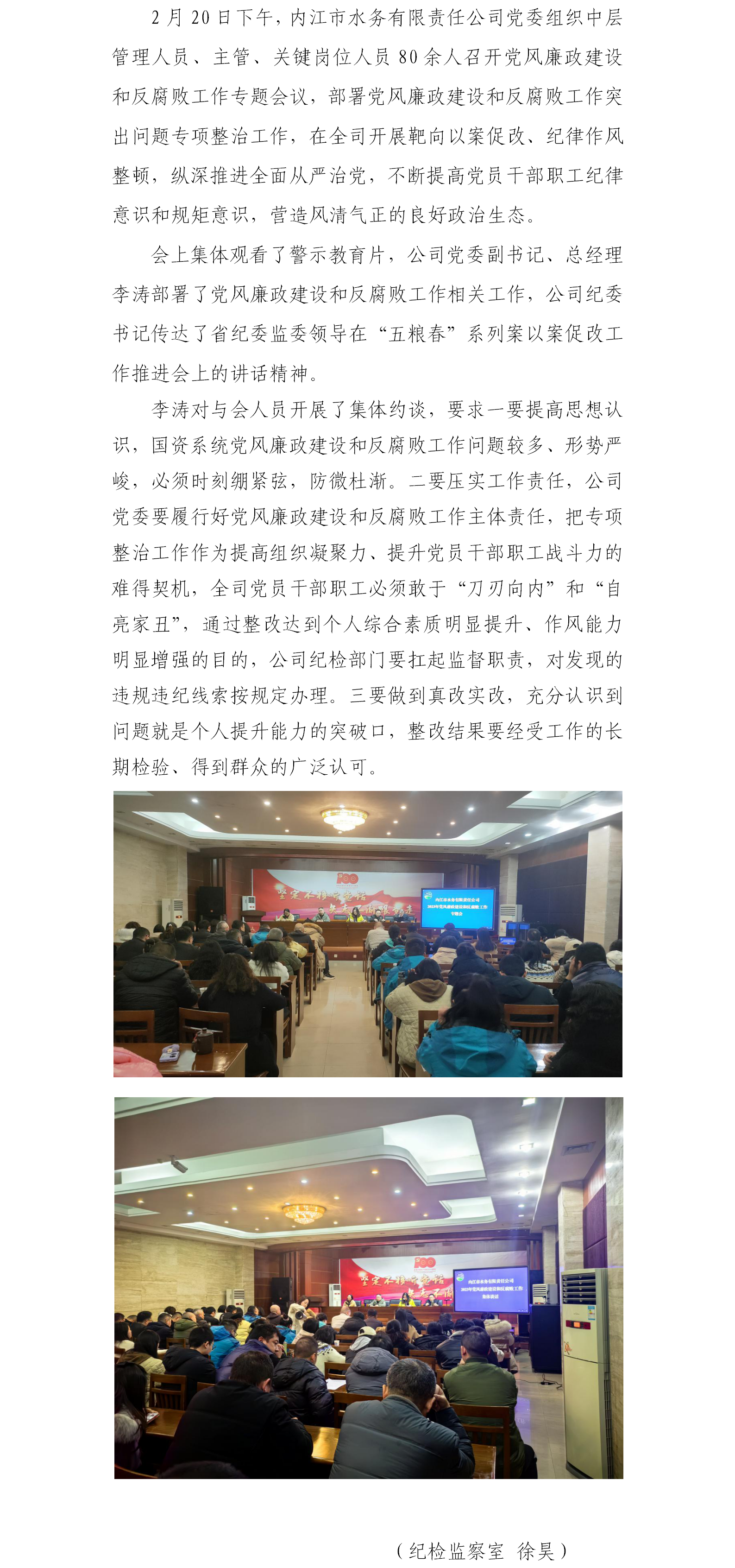 中共內江市水務有限責任公司委員會召開黨風廉政建設和反腐敗工作專題會議