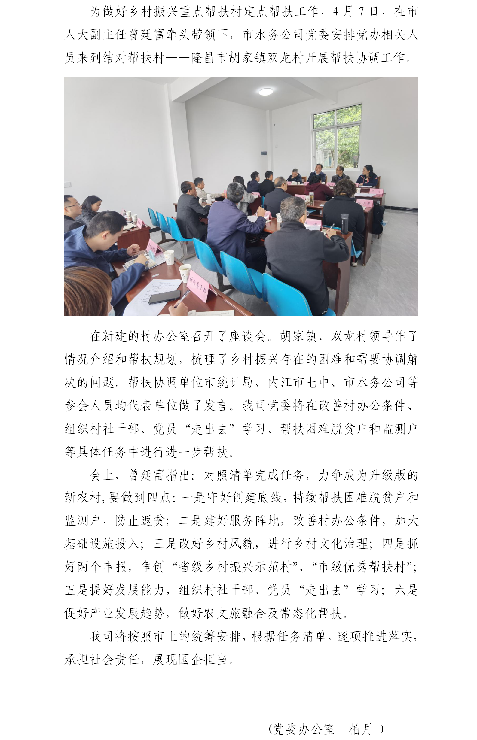 市水務(wù)公司到隆昌市胡家鎮(zhèn)雙龍村開展幫扶協(xié)調(diào)工作