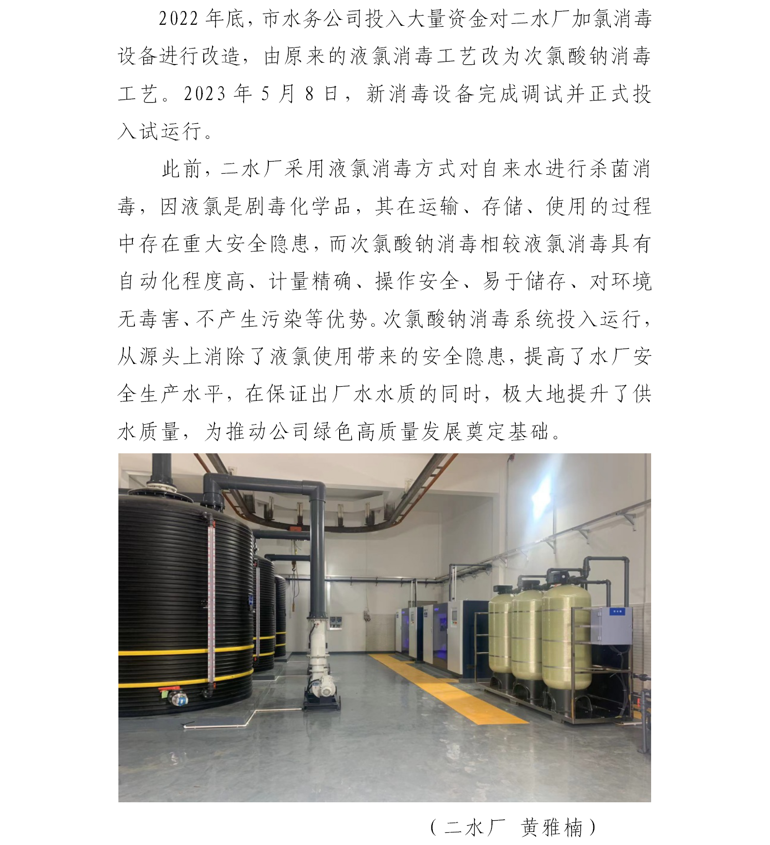 二水廠完成次氯酸鈉消毒系統(tǒng)改造工程