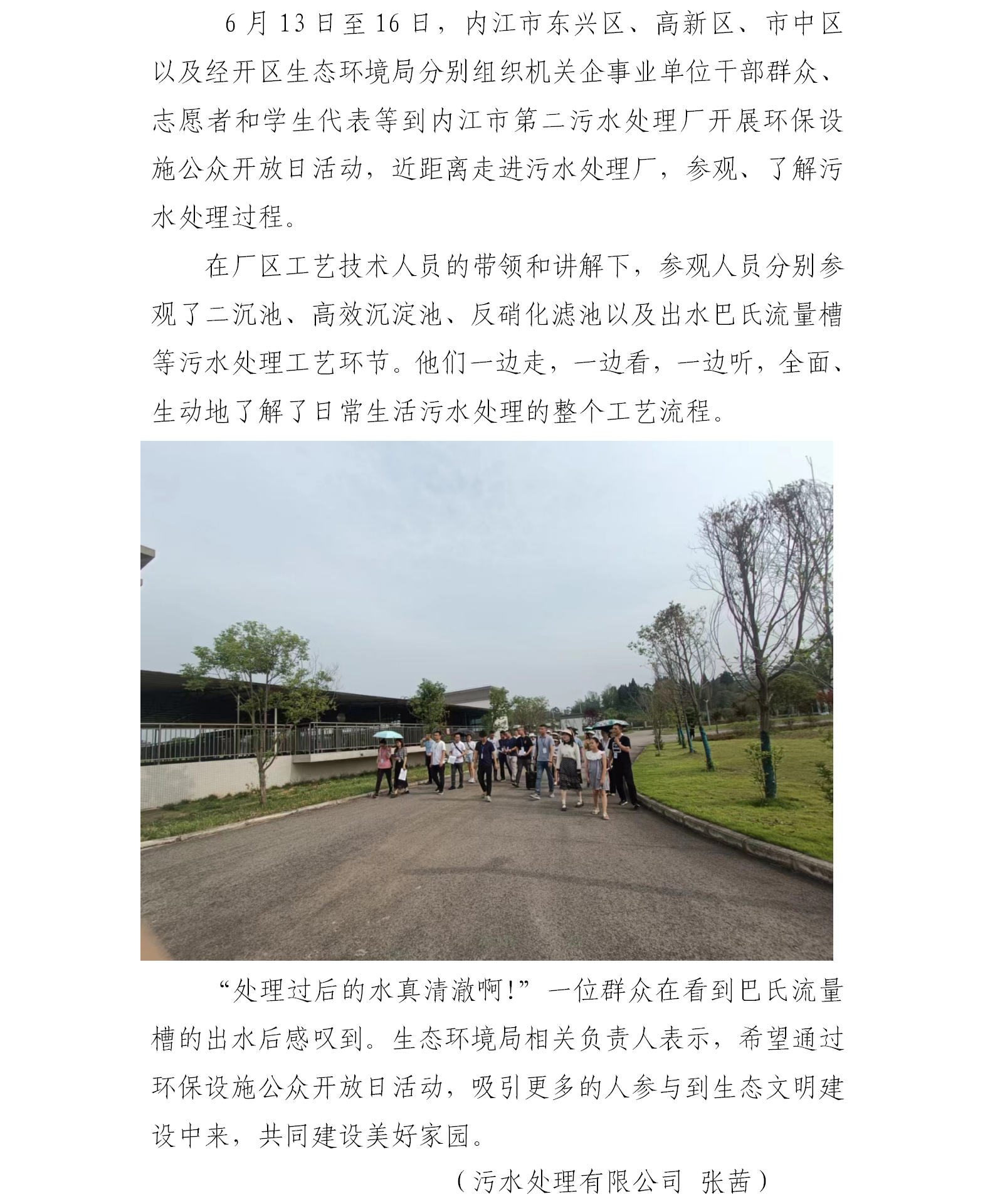 內(nèi)江市多區(qū)生態(tài)環(huán)境局組織到第二污水處理廠開展環(huán)保設(shè)施公眾開放日活動
