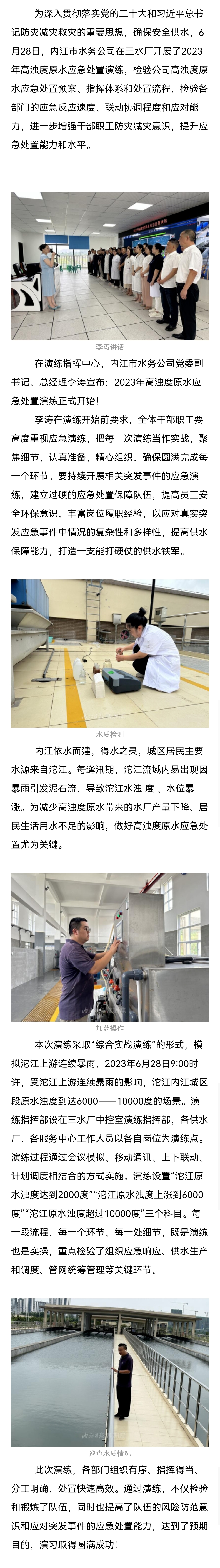 內(nèi)江市水務(wù)公司開展2023年高濁度原水應(yīng)急處置演練