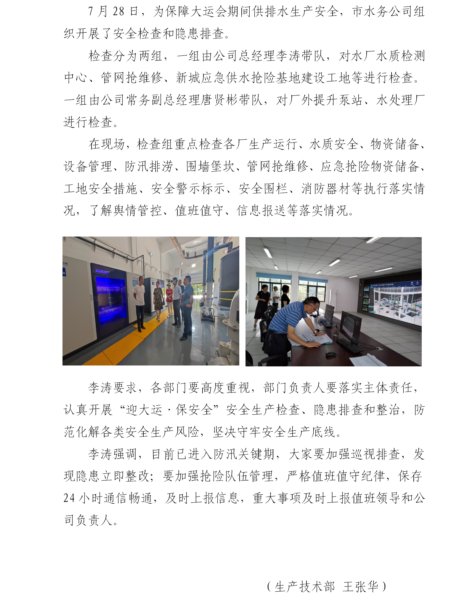 內(nèi)江市水務(wù)有限責(zé)任公司組織開展“迎大運(yùn)·保安全”安全生產(chǎn)檢查