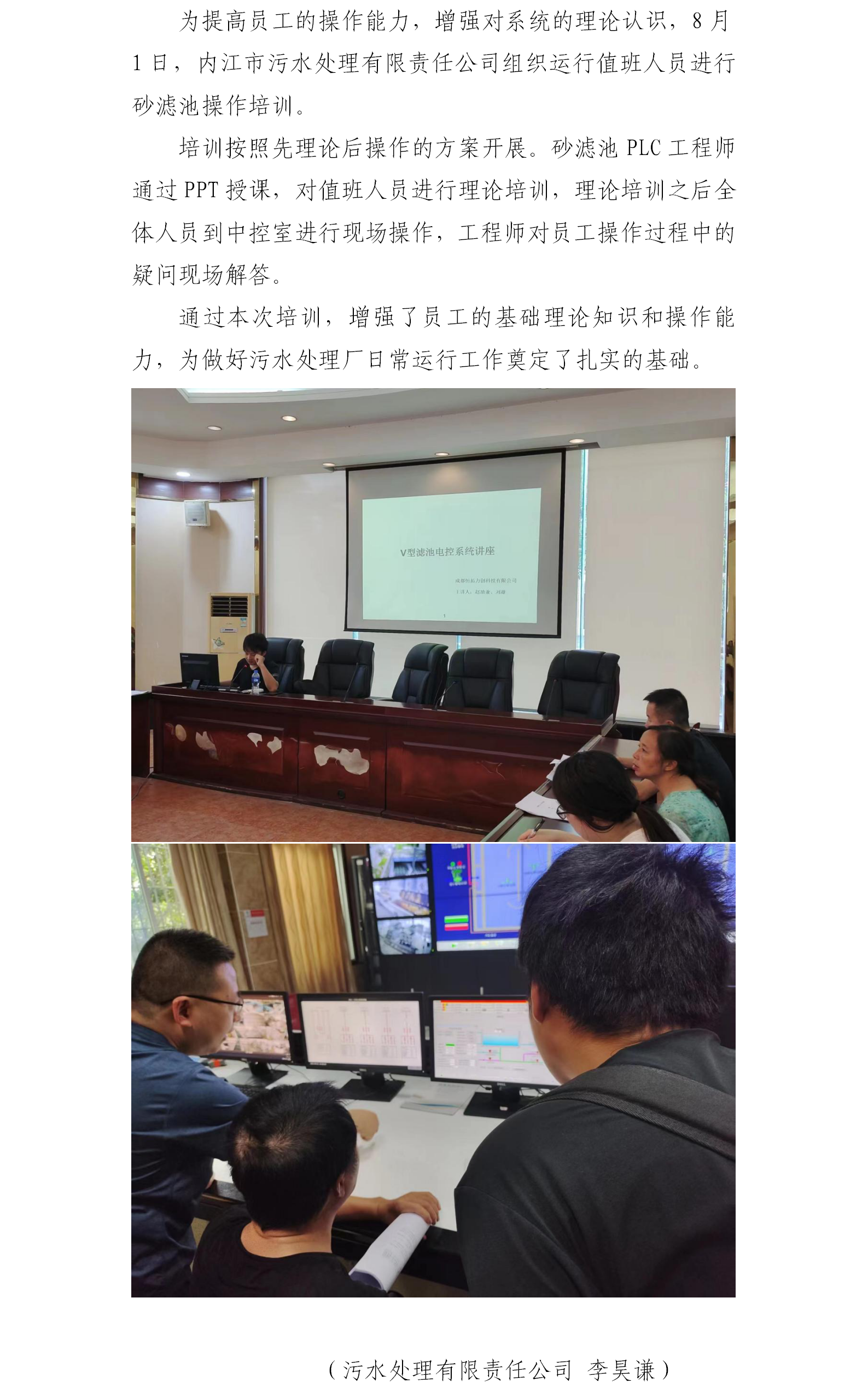 內(nèi)江市污水處理有限責(zé)任公司開展砂濾池操作培訓(xùn)