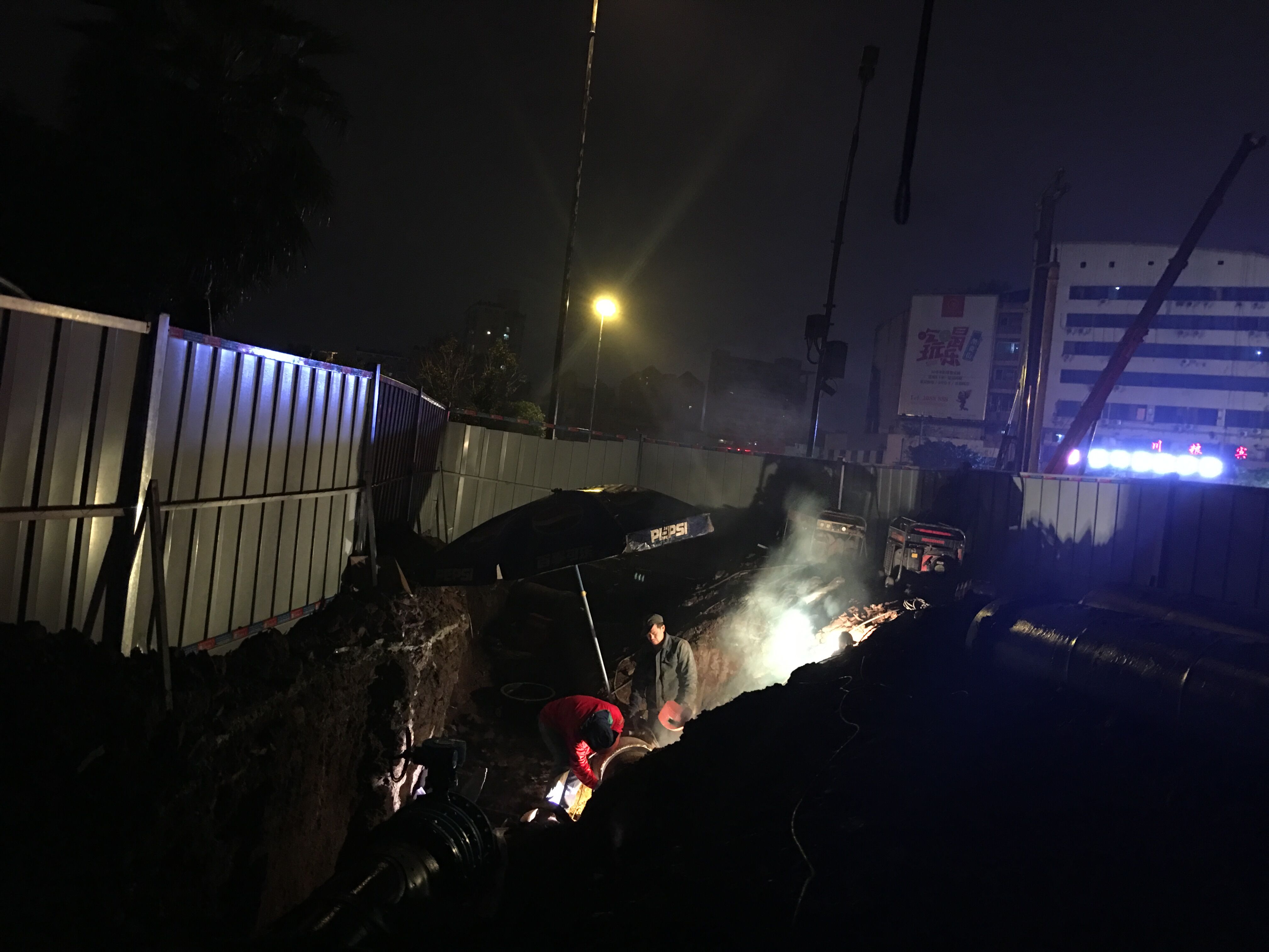 內(nèi)江市水務(wù)有限責(zé)任公司為配合西林大橋南北下穿工程順利進(jìn)行,積極組織豪盛安裝公司、工程管理部、管網(wǎng)運(yùn)行部等相關(guān)部門進(jìn)行西林大橋南北橋頭下穿DN500給水管道改造。為保證附近居民白天的正常用水,我司特意把工期定在晚上和凌晨。2016年11月22日晚上11點多,陰雨綿綿,寒風(fēng)刺骨,公司黨委副書記、紀(jì)委書記、工會主席李濤帶領(lǐng)黨群工作部提上涼菜、面包和牛奶到施工現(xiàn)場慰問挑燈夜戰(zhàn)、頂風(fēng)作業(yè)的加班人員。他們不畏嚴(yán)寒、不知饑餓,只為不影響居民正常生活、保證城市安全供水埋頭苦干的水務(wù)人,讓我們不得不心生敬意。