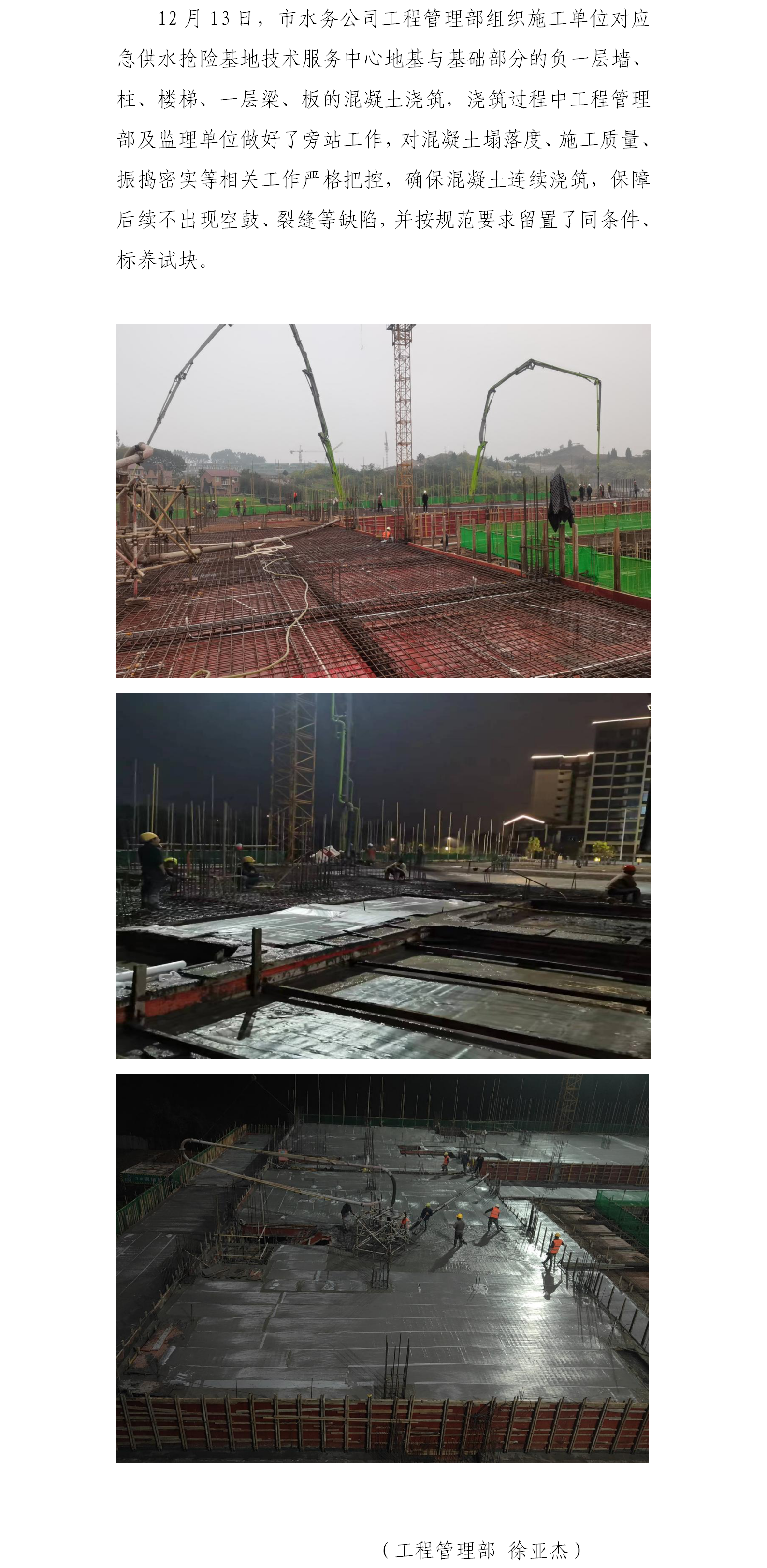 新城片區(qū)應(yīng)急供水搶險(xiǎn)基地技術(shù)服務(wù)中心完成部分混凝土澆筑工程