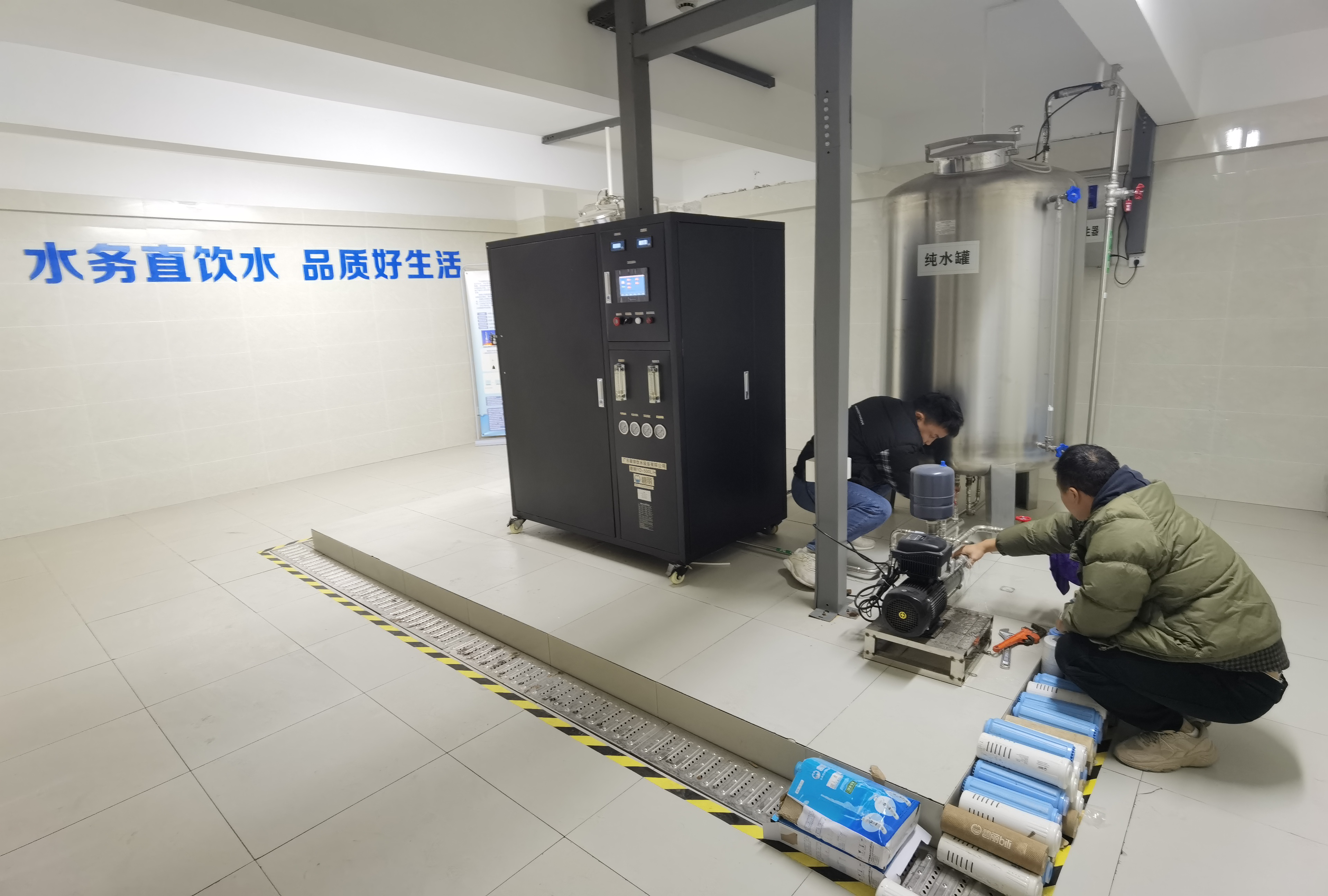 豪鵬二次供水公司對六中直飲水設備 進行應急處置