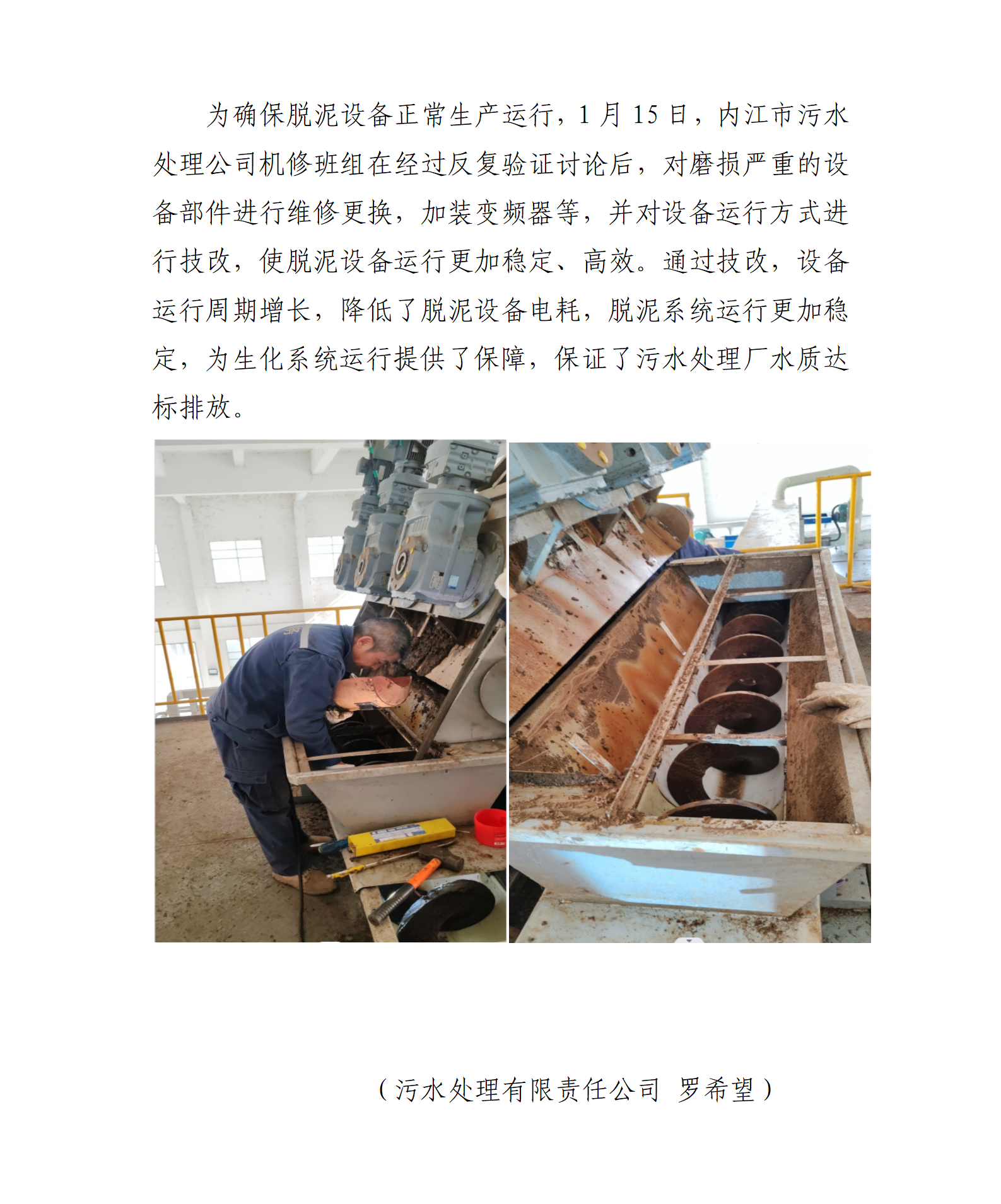污水處理公司對(duì)脫泥設(shè)備進(jìn)行技改 確保污水達(dá)標(biāo)排放