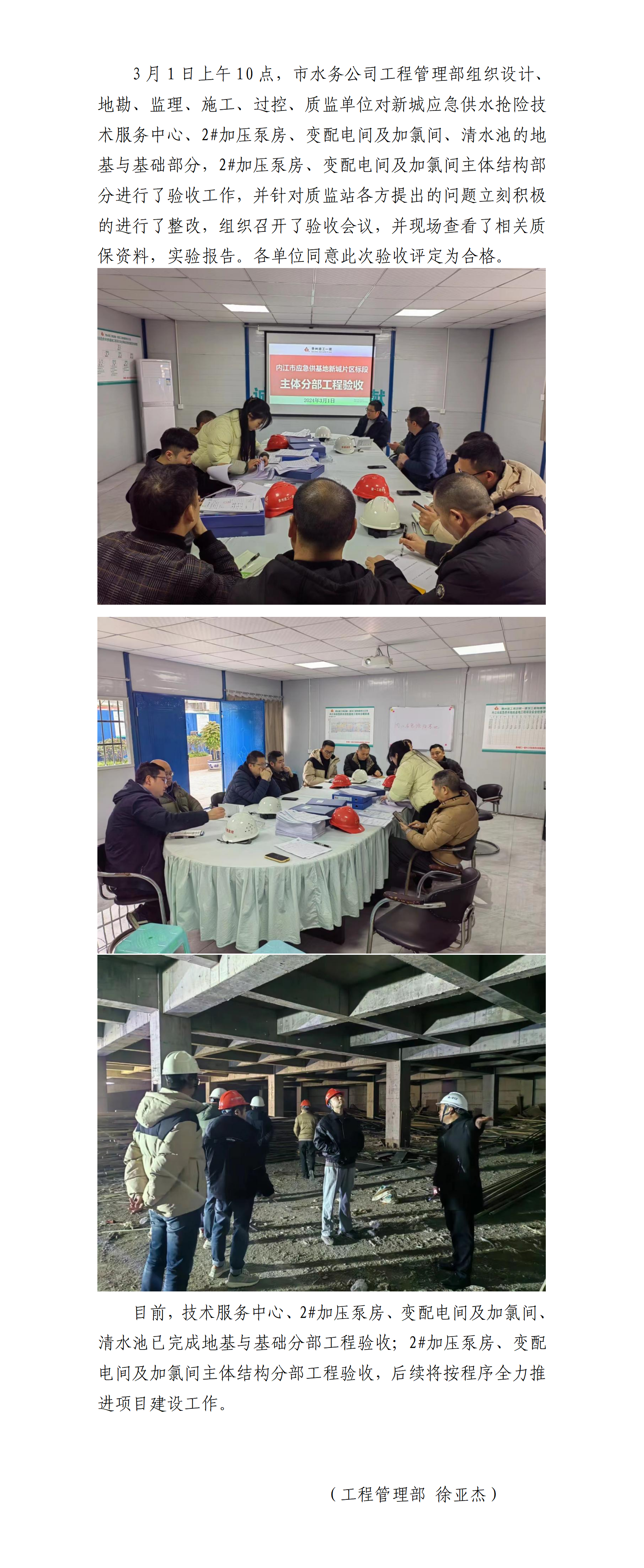 順利完成新城片區(qū)服務(wù)中心、加壓泵房等部分工程驗收