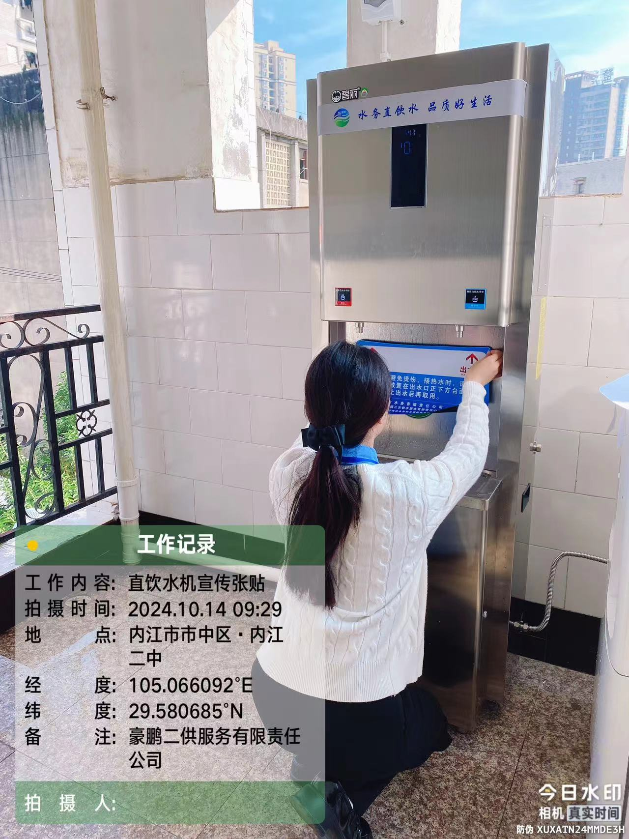 近期,內(nèi)江二中(沱中路校區(qū)) 21 臺直飲水設(shè)備順利完成了安裝,豪鵬公司積極跟進完善配套服務(wù),在直飲水設(shè)備上張貼了運維記錄表及溫馨提示。