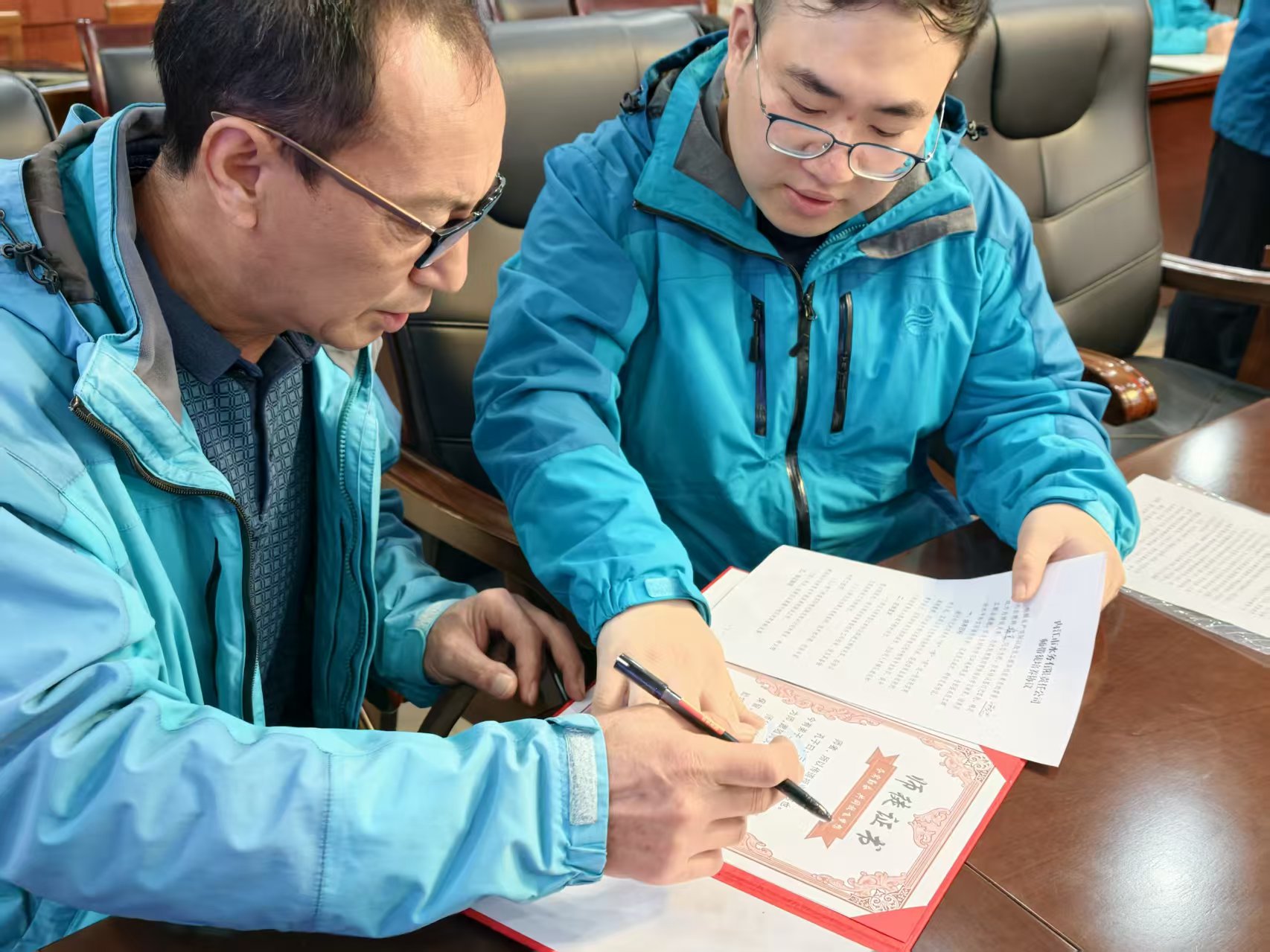 儀式現(xiàn)場(chǎng),結(jié)對(duì)師徒分組就座,敬茶、簽訂師徒證書和《師帶徒培養(yǎng)協(xié)議》等環(huán)節(jié)逐項(xiàng)推進(jìn)。徒弟們躬身行禮、雙手奉茶,師父們接過茶杯,親手將師徒證書和《師帶徒培養(yǎng)協(xié)議》交到徒弟手中,也將沉甸甸的傳承責(zé)任交到了青年一代手上。所有結(jié)對(duì)師徒現(xiàn)場(chǎng)簽訂協(xié)議,明確培養(yǎng)周期、成長(zhǎng)目標(biāo)與雙方權(quán)責(zé),在公司領(lǐng)導(dǎo)的見證下留下了極具紀(jì)念意義的時(shí)刻。