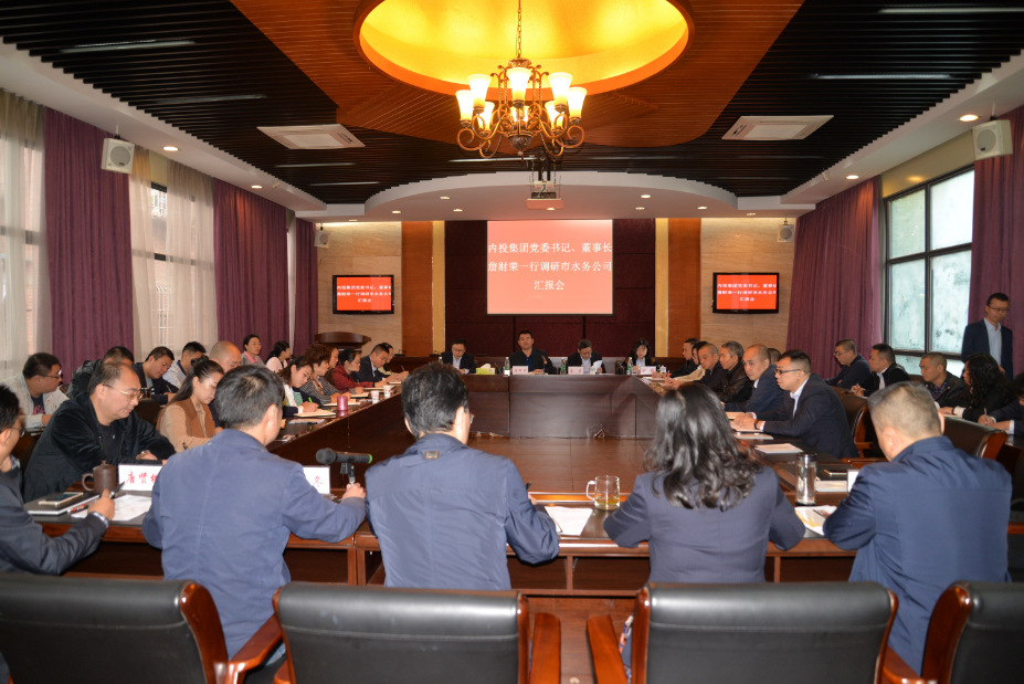 1016日上午,內投集團黨委書記、董事長詹財榮率隊調研市水務公司。公司領導班子成員、中層管理人員近30人參會。會議由副總經(jīng)理林冬主持。