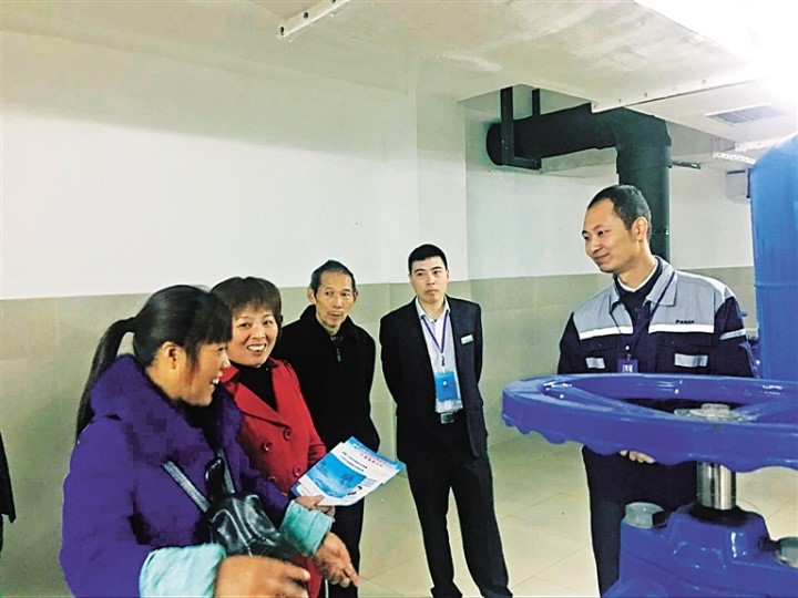 二次供水是什么?對居民用水有什么影響?平時要如何維護(hù)?如何繳納二次供水服務(wù)費?活動過程中,二次供水公司管理人員在水泵房內(nèi)詳細(xì)向居民介紹二次供水設(shè)施的基本構(gòu)造和原理,并耐心解答用戶提出的問題。