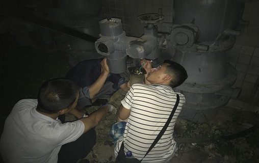 5月16日晚上19:43分,污水處理廠一期4號(hào)生化池進(jìn)氣閥跳閘,檢修人員放棄自身休息時(shí)間,立即趕赴現(xiàn)場(chǎng)開展搶修。