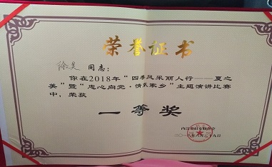 在內(nèi)江婦聯(lián)組織的2018年“四季風(fēng)采麗人行—夏之美”暨“忠心向黨.清溪家鄉(xiāng)”主題演講比賽中,我司推薦的選手徐昊代表國資委參賽,獲得一等獎。