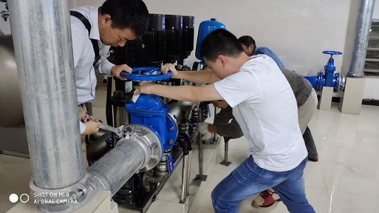 9月17日下午,豪鵬二供公司巡查人員在開展計劃性設(shè)備巡檢時,在公園一號小區(qū)泵房內(nèi)發(fā)現(xiàn)加壓設(shè)備出現(xiàn)重大安全隱患,即高區(qū)加壓設(shè)備出水橫管出現(xiàn)嚴重傾斜和管道卡箍產(chǎn)生部分位移,造成與管道相連的柔性接頭存在隨時破裂漏水可能。在泵房隔壁就是整個小區(qū)配電室,如泵房內(nèi)管道漏水將直接對配電室造成威脅。面對險情,豪鵬公司立即組織技術(shù)人員進行搶修,于當晚10:30成功消除安全隱患。此次搶修工作得到豪盛安裝公司的大力支持和配合。