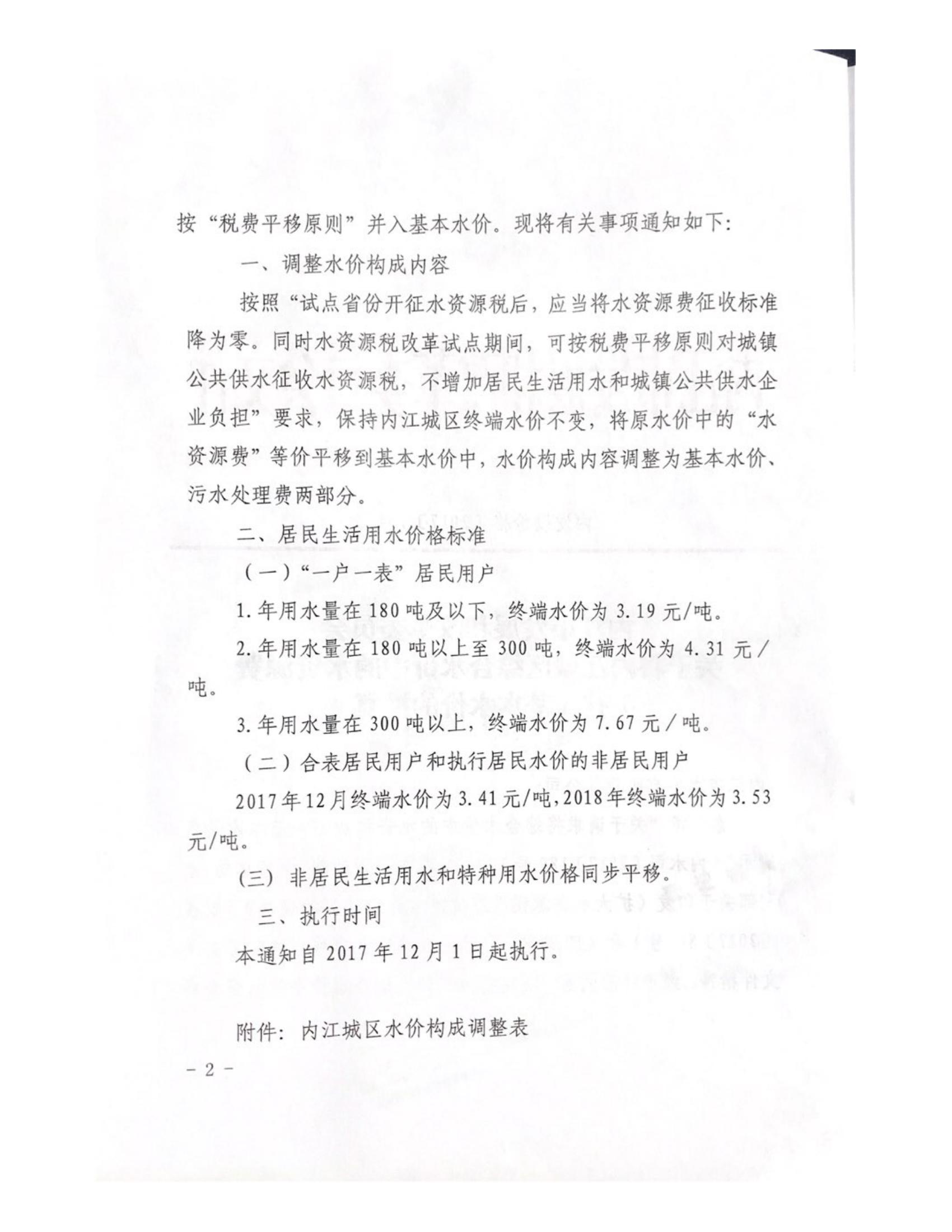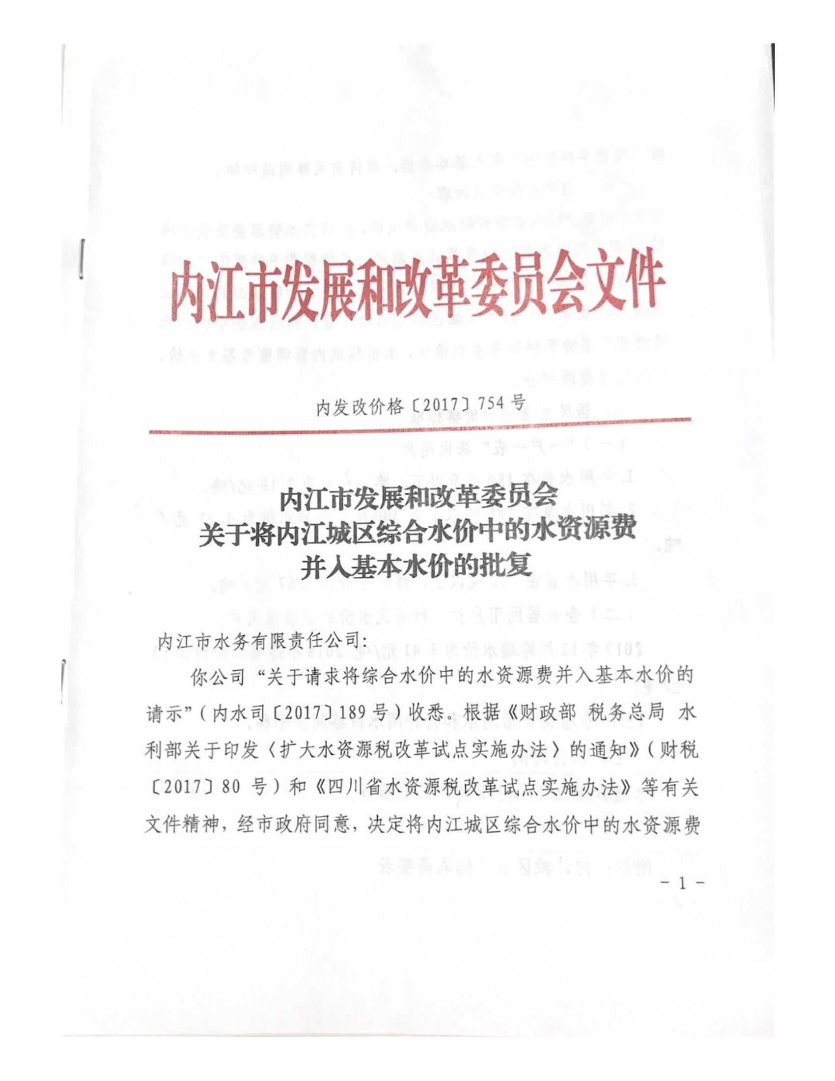 內(nèi)江市發(fā)展和改革委員會(huì)關(guān)于將內(nèi)江城區(qū)綜合水價(jià)中的水資源費(fèi)并入基本水價(jià)的批復(fù)