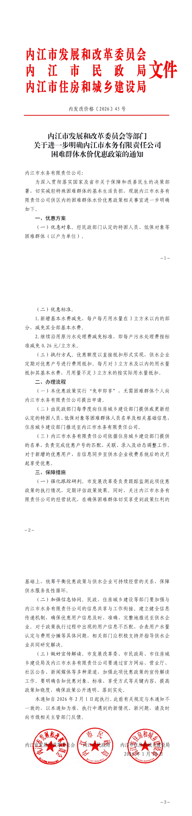 內(nèi)江市水務(wù)有限責(zé)任公司困難群體水價(jià)優(yōu)惠政策