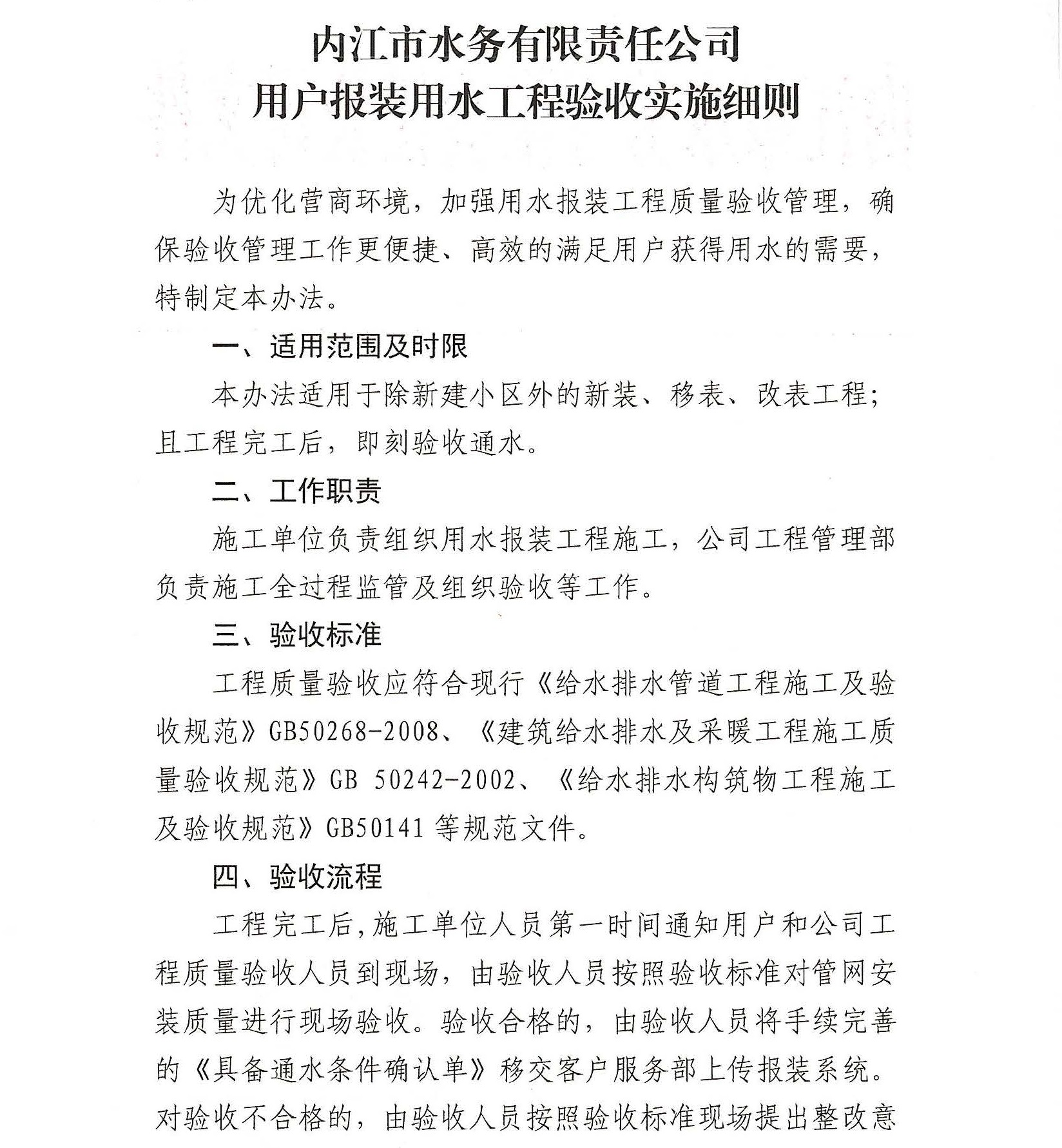 內(nèi)江市水務(wù)有限責(zé)任公司用戶報(bào)裝用水工程驗(yàn)收實(shí)施細(xì)則
