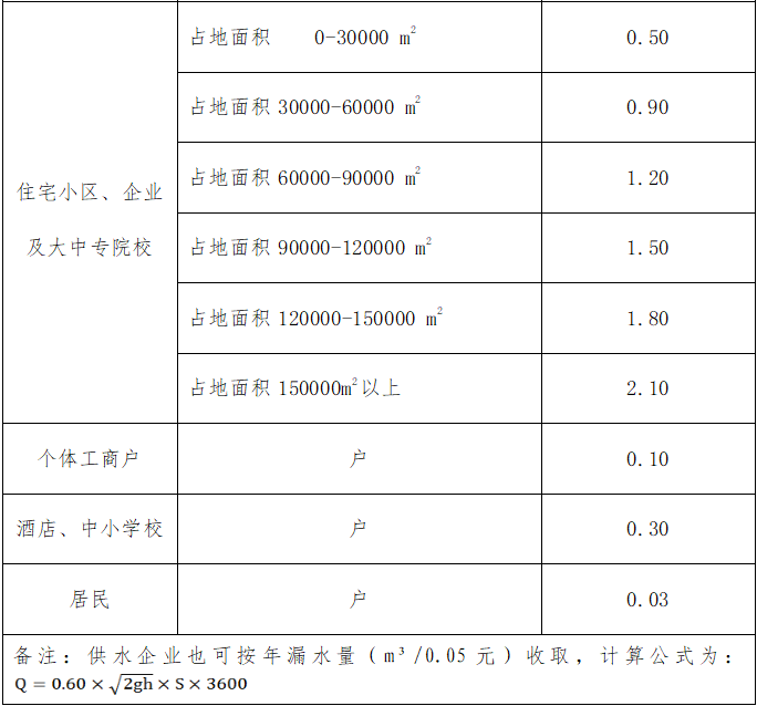 內(nèi)江市水務有限責任公司探漏服務收費標準