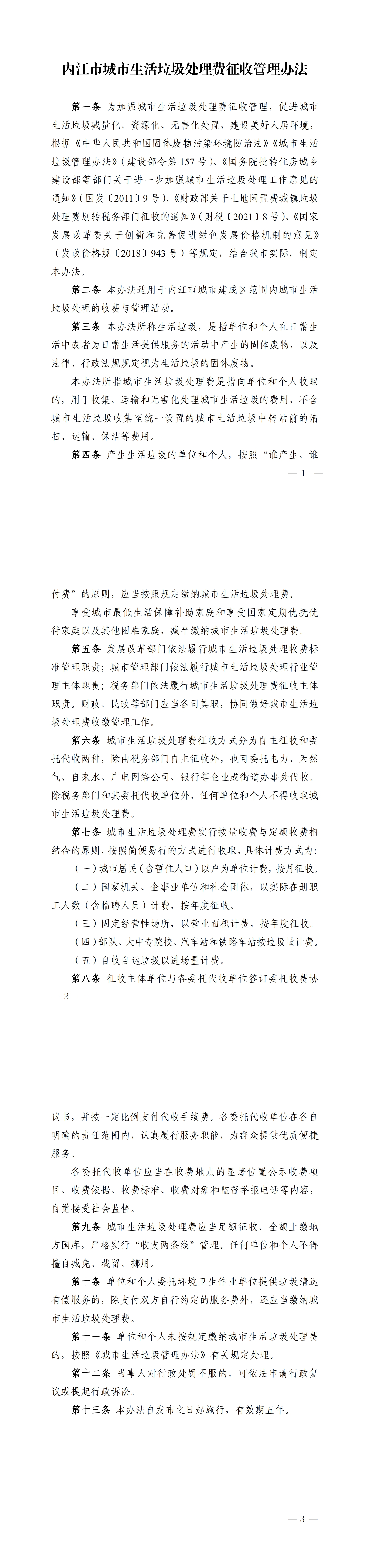 內(nèi)江市城市生活垃圾處理費征收管理辦法
